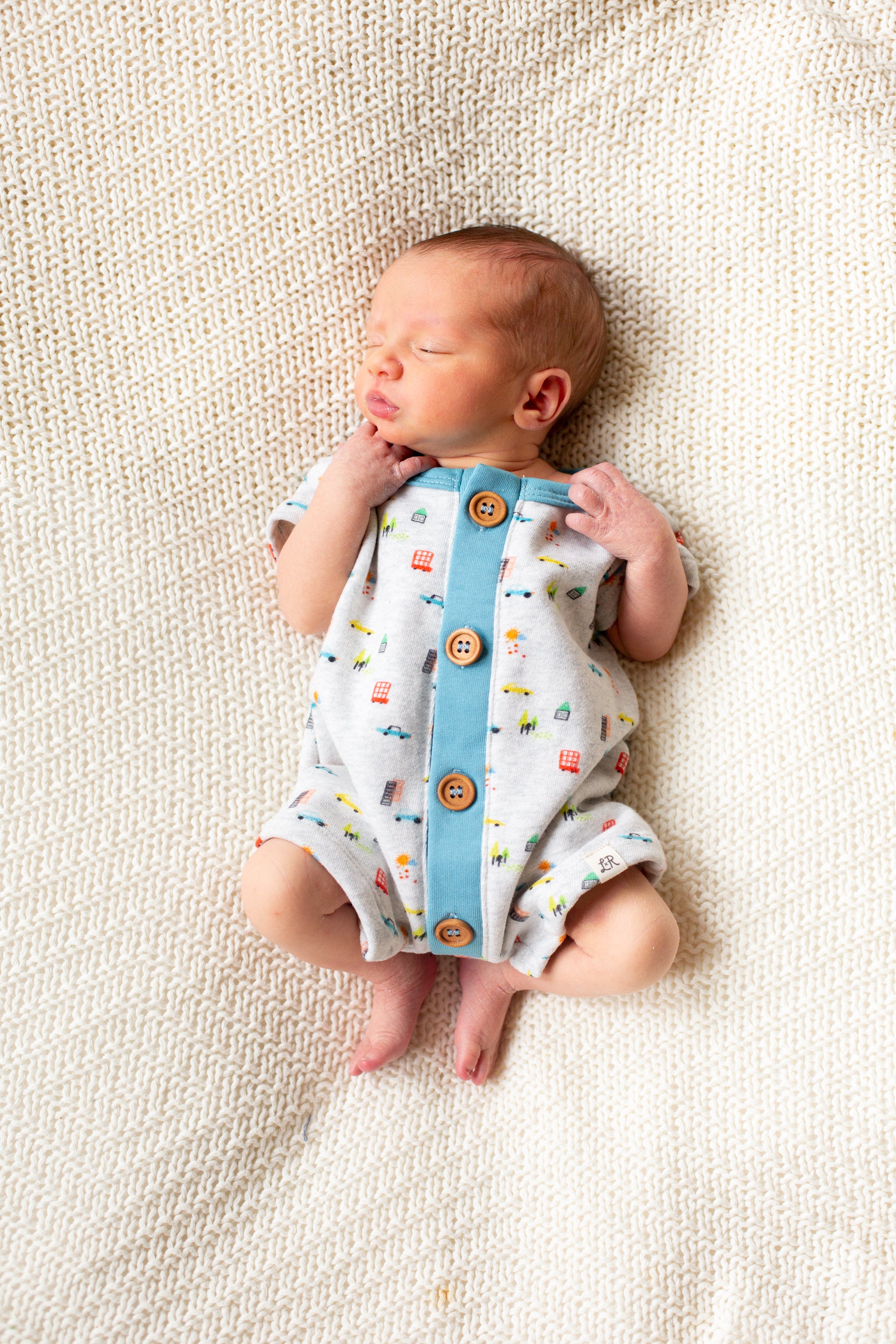 Car Short Sleeve Button Romper