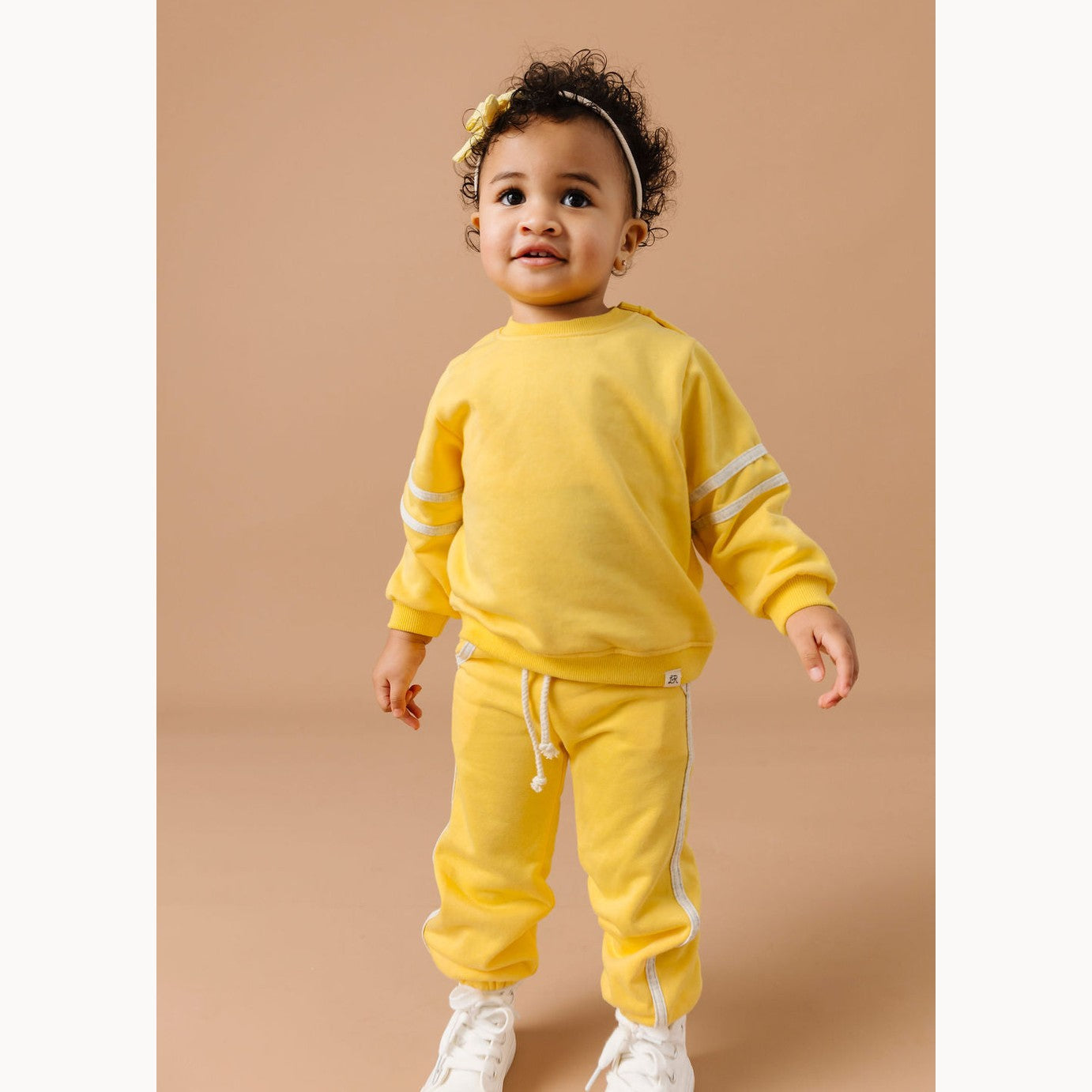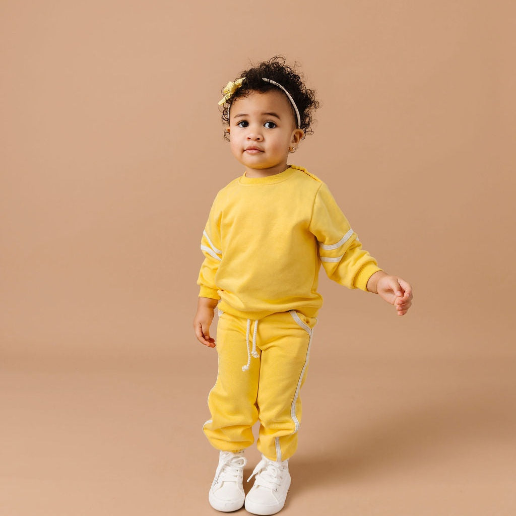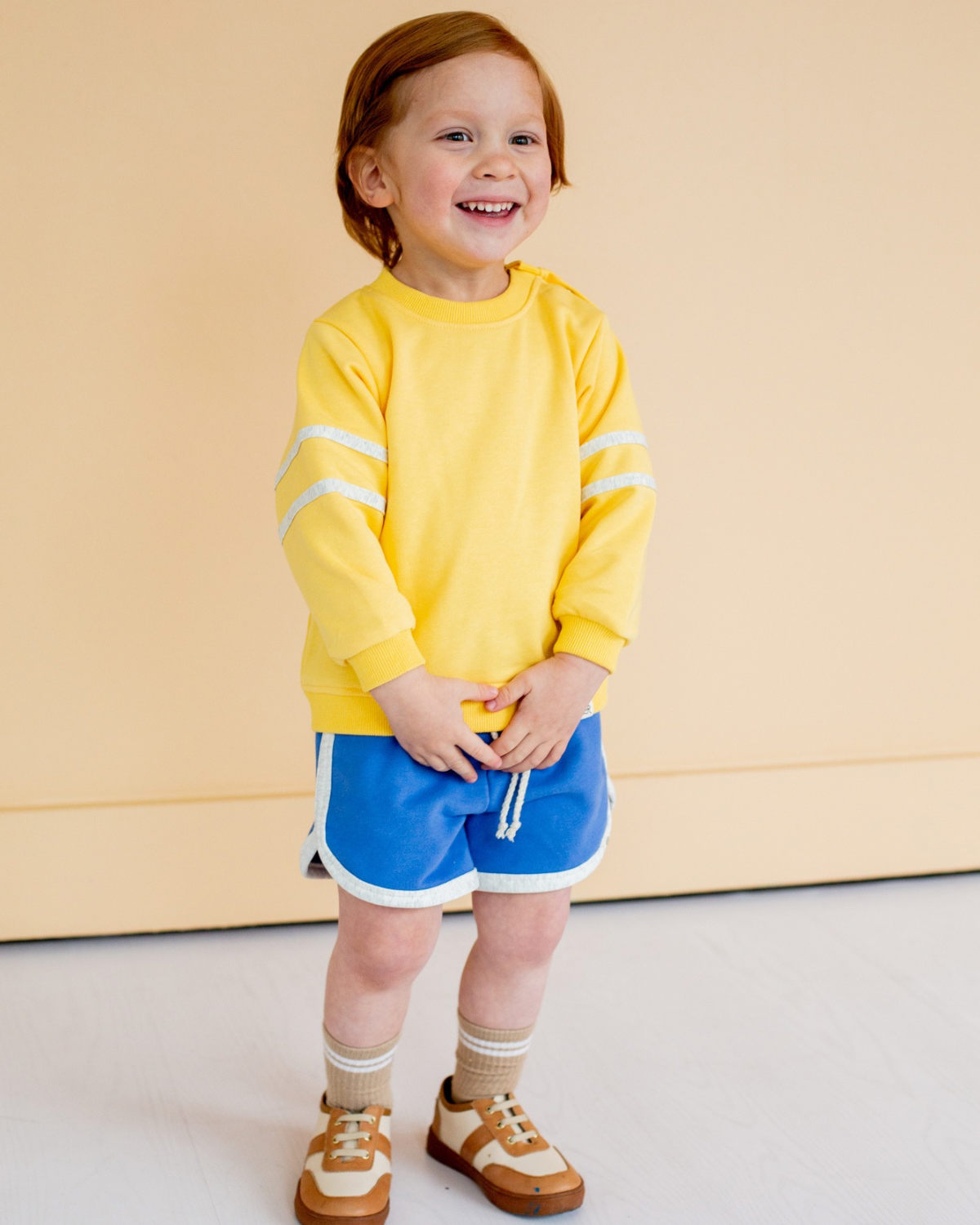 Comfy medium-weight terry crew with drop-shoulder style for everyday kids' comfort.