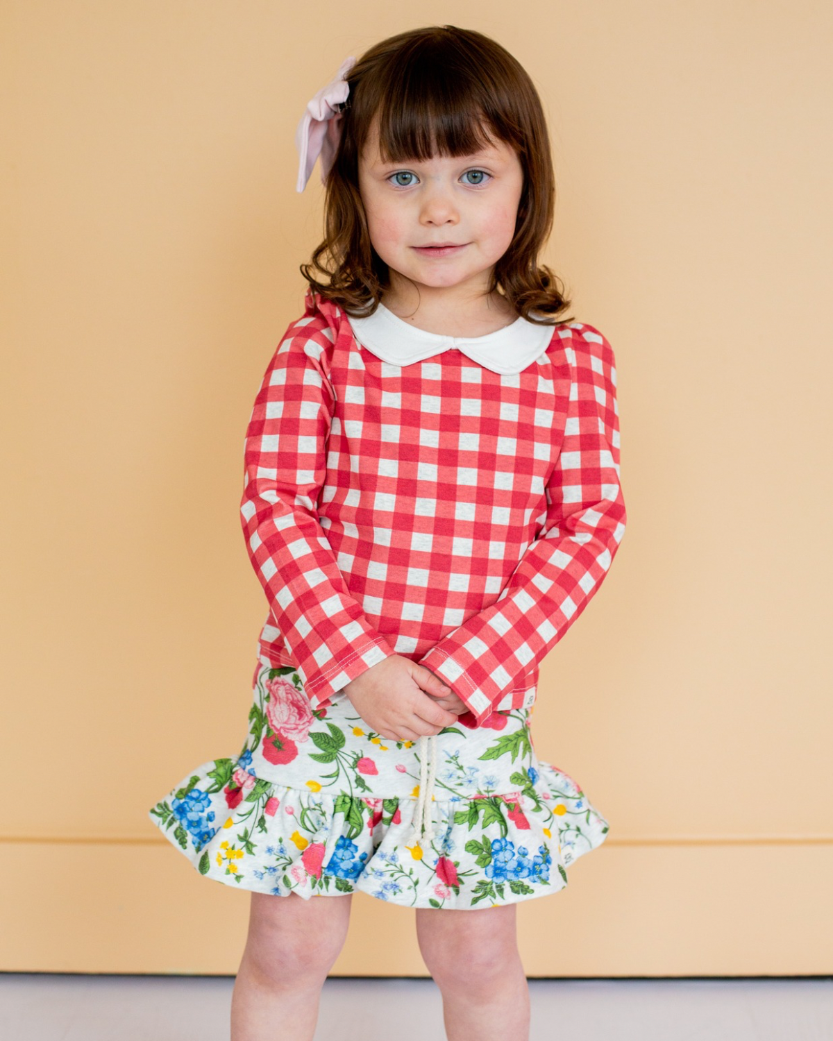 Cherry Check Long Sleeve Peter Pan Collar Top