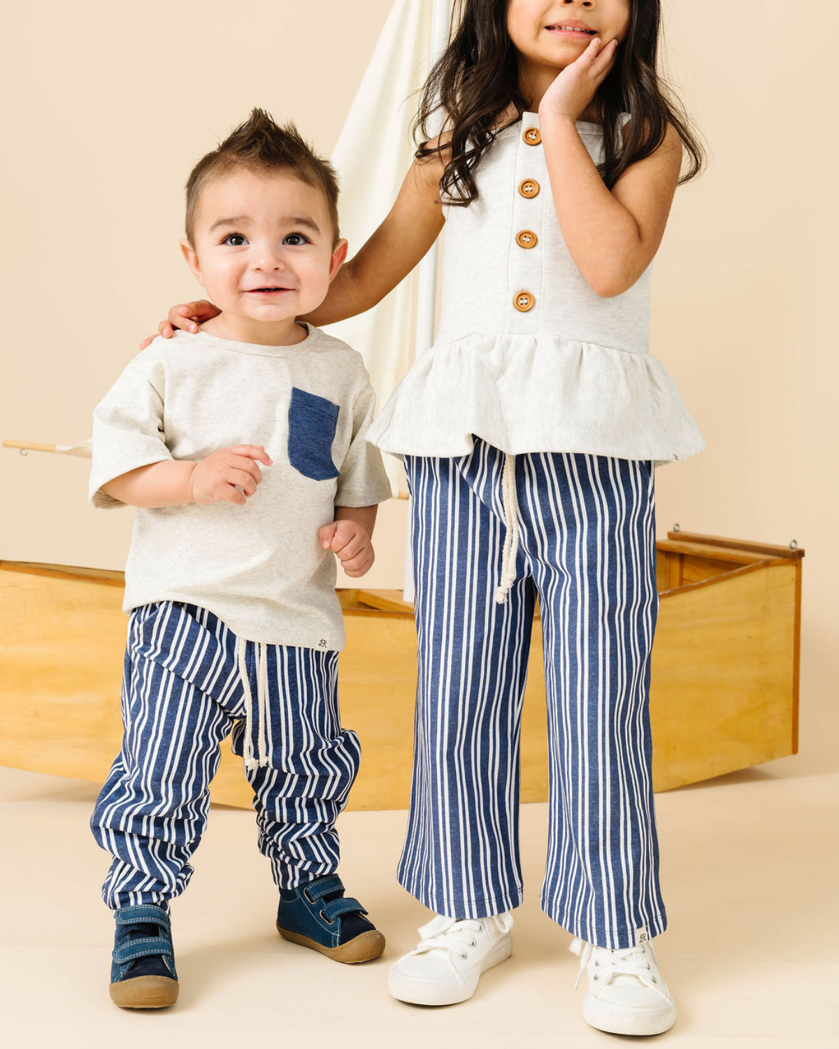 Our styles are taylored but comfortable. If your child is between sizes or you prefer extra room to grow, we recommend sizing up. Always refer to the product page for style-specific measurements.