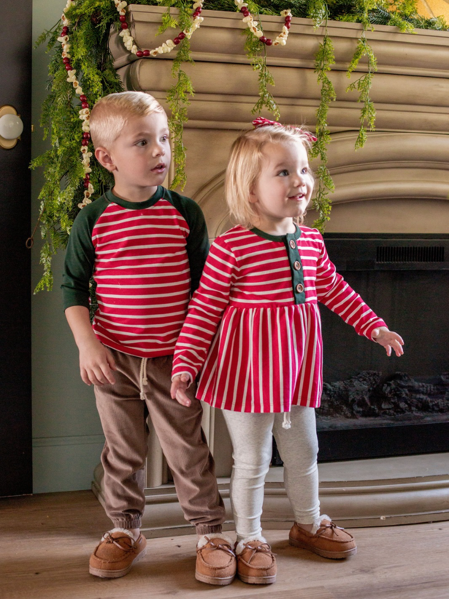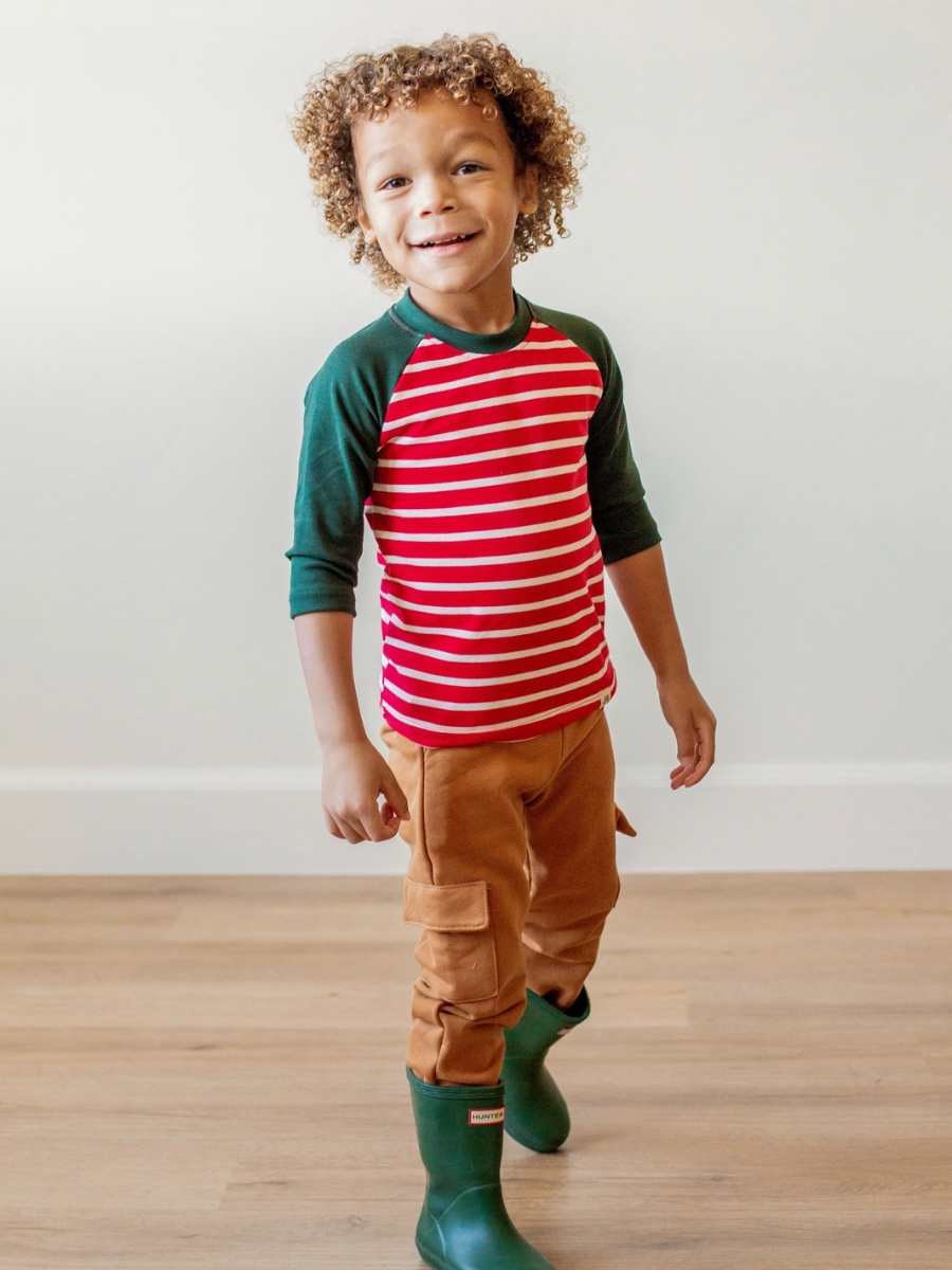 Candy Cane Stripe and Evergreen Baseball Shirt