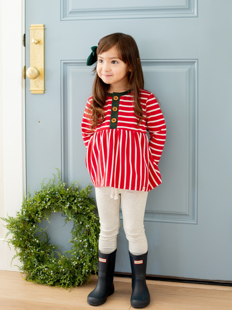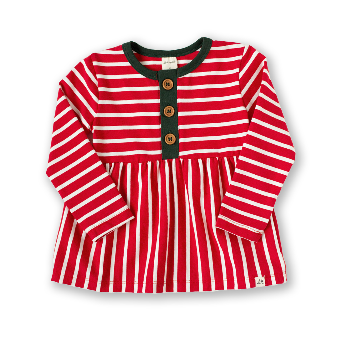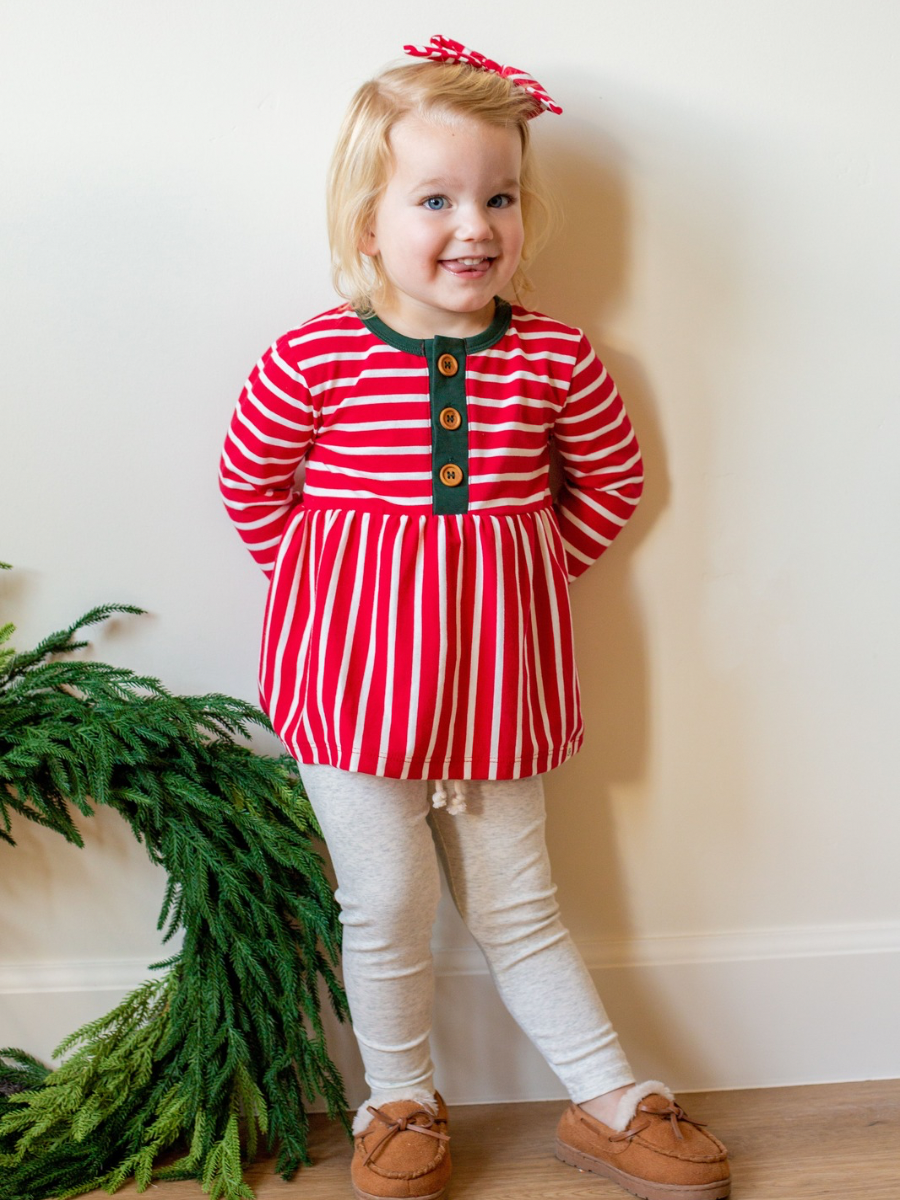 Candy Cane Stripe and Evergreen Long Sleeve Button Peplum