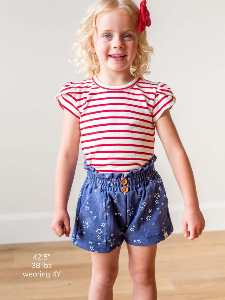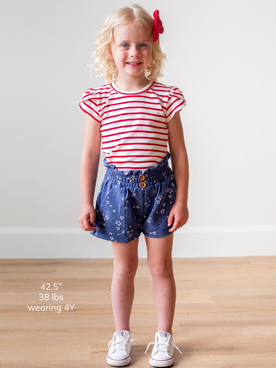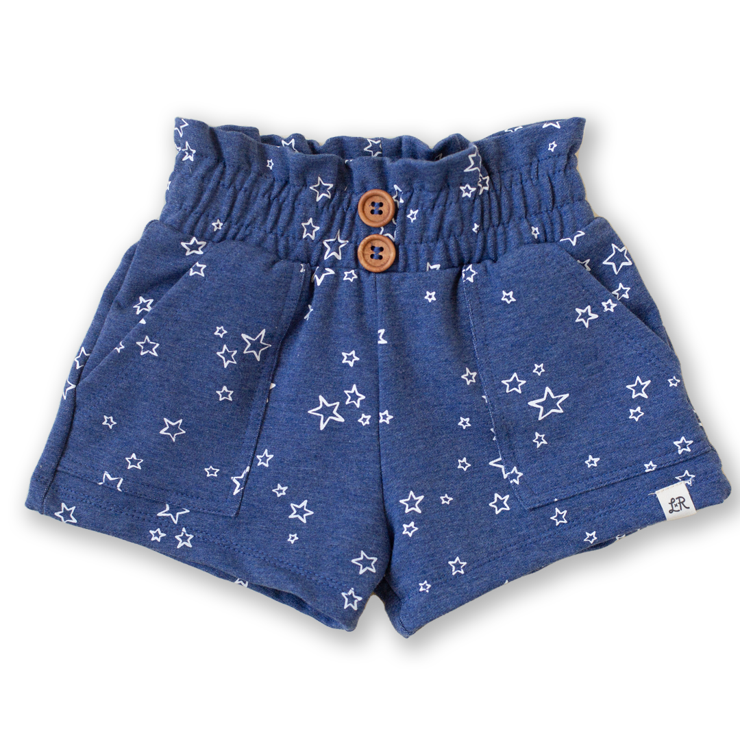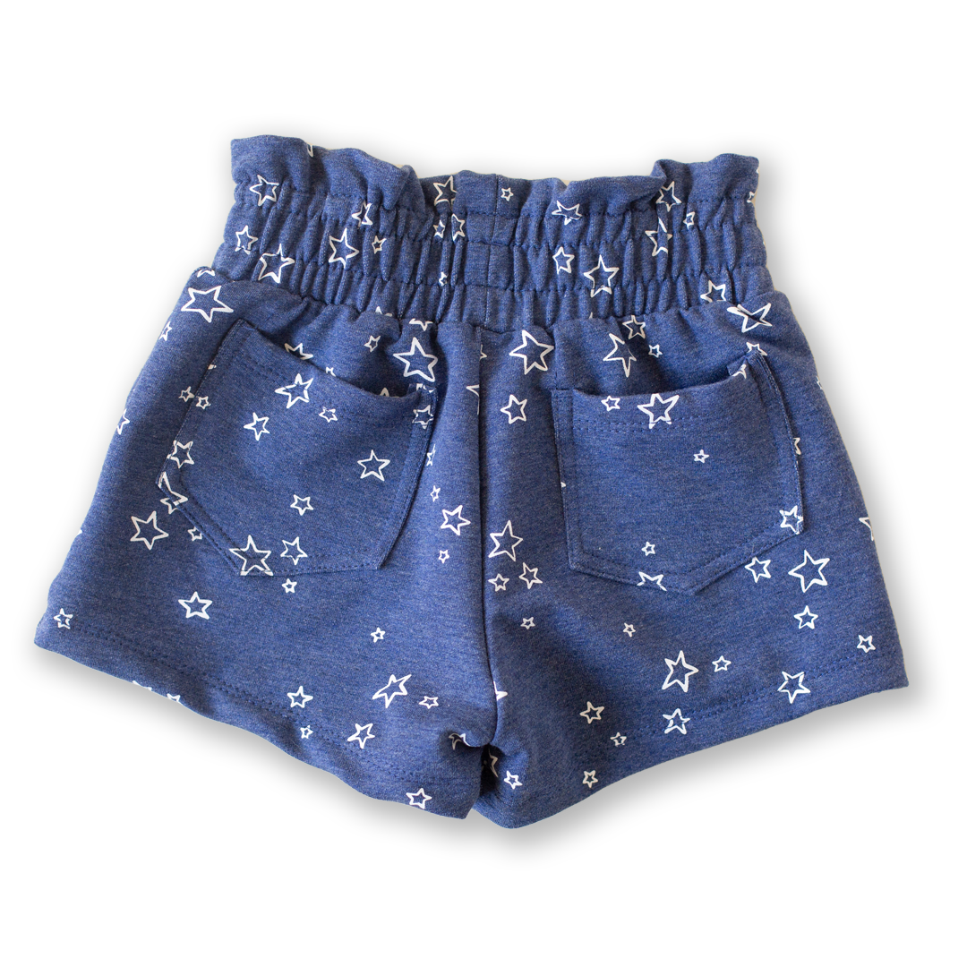 Denim Star Print Paper Bag Waist Shorts