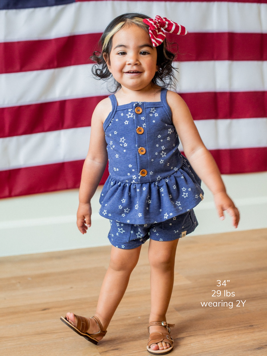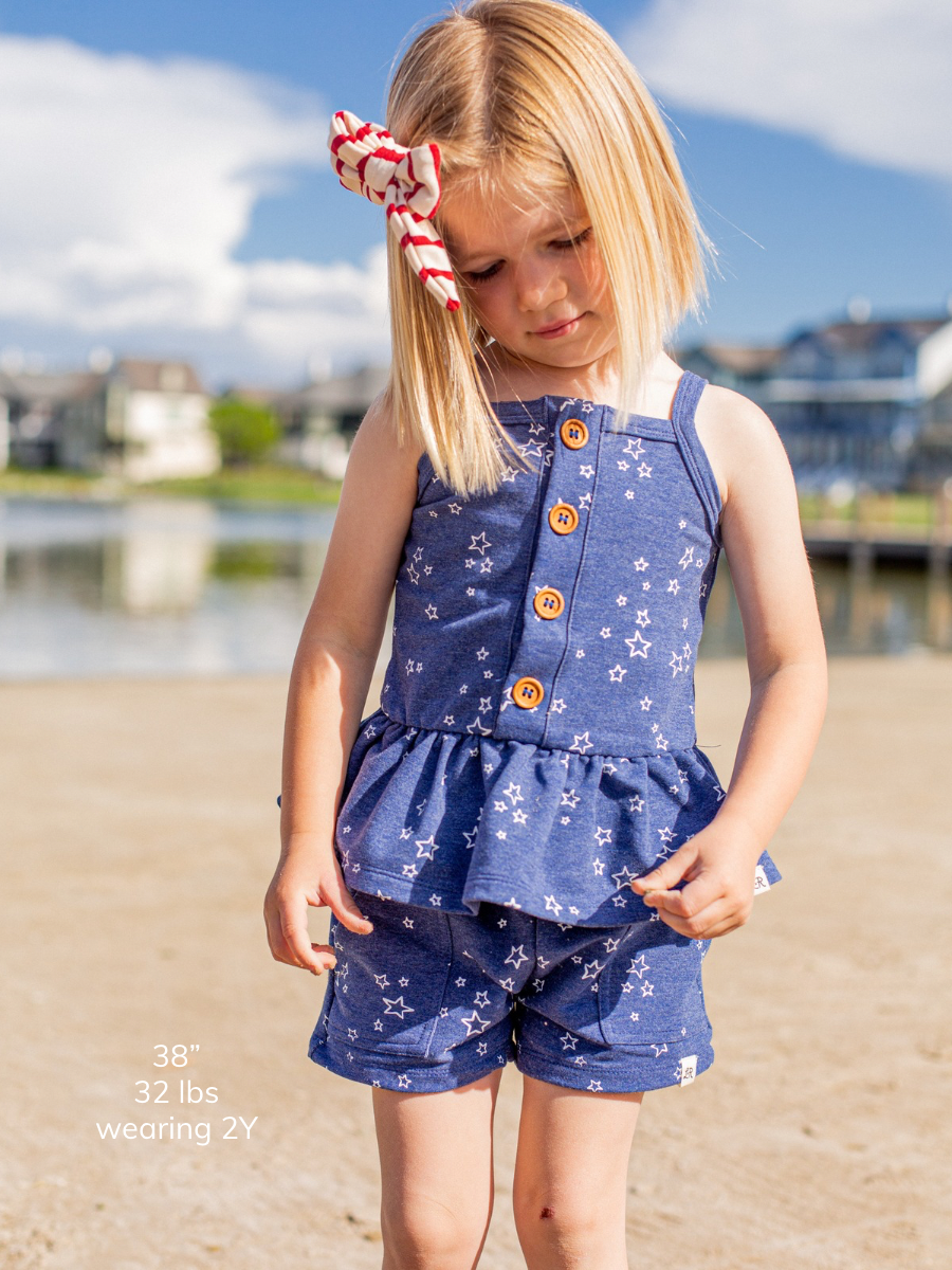 Summer is just around the corner with our Heritage collection! Materials include 92% cotton, 8% Spandex. Material is not pre-shrunk so please allow up to 10% shrinkage if machine-dried. Made in China.