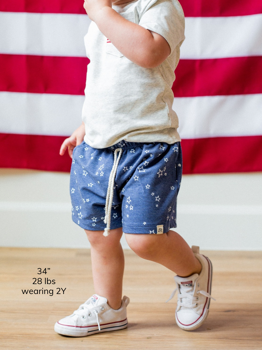 Denim Star Print Surf Shorts