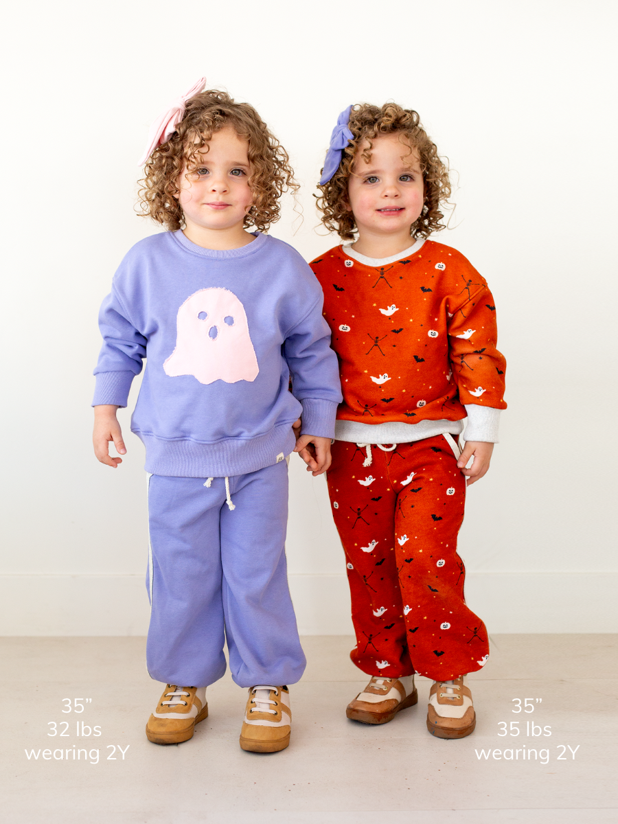 Comfy meets style in our Little Spells collection! Colors are coordinated to mix and match throughout the entire line! Materials include 85% cotton, 15% polyester medium weight performance terry fabric. Material is not pre-shrunk so please allow up to 10% shrinkage if machine-dried. Made in China.