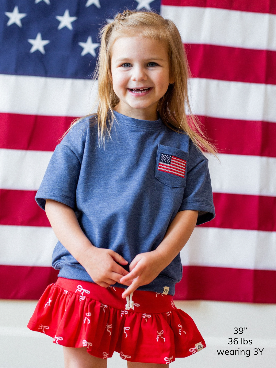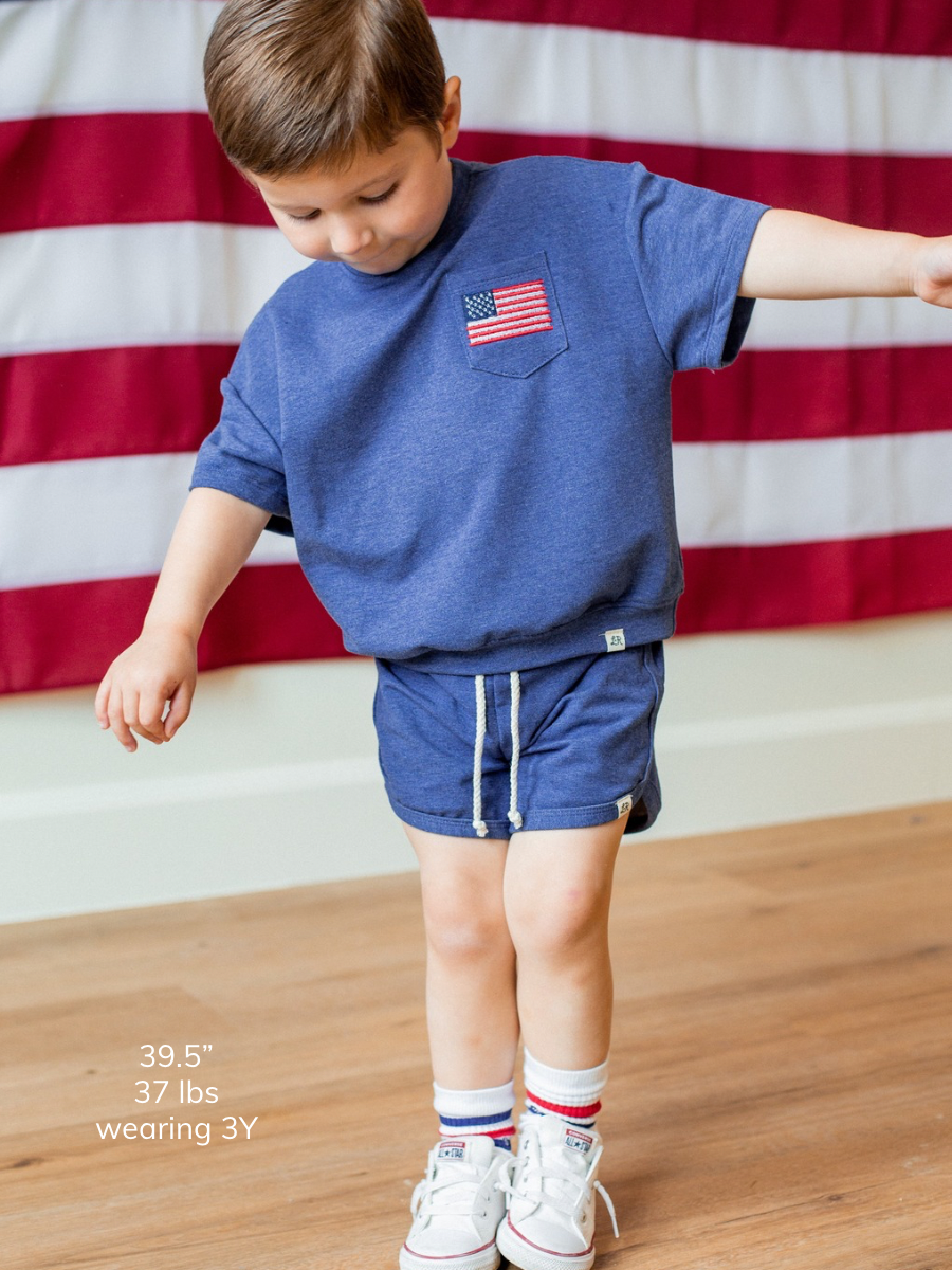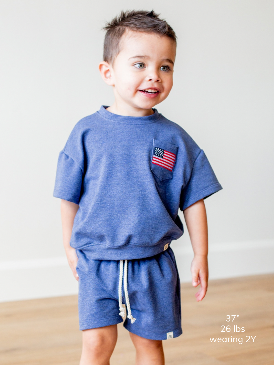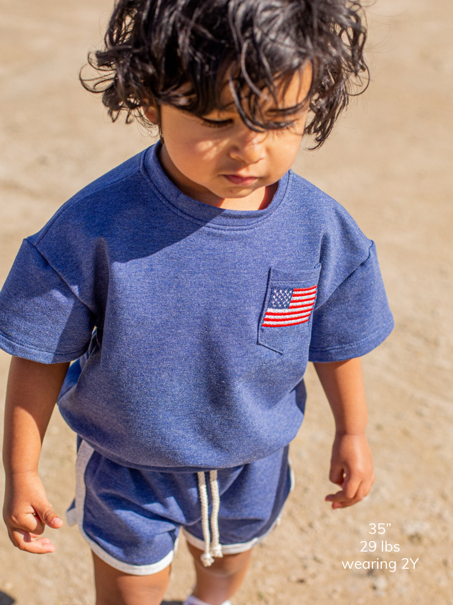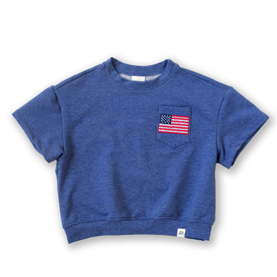 Denim Embroidered Flag Short Sleeve Drop Shoulder Crew