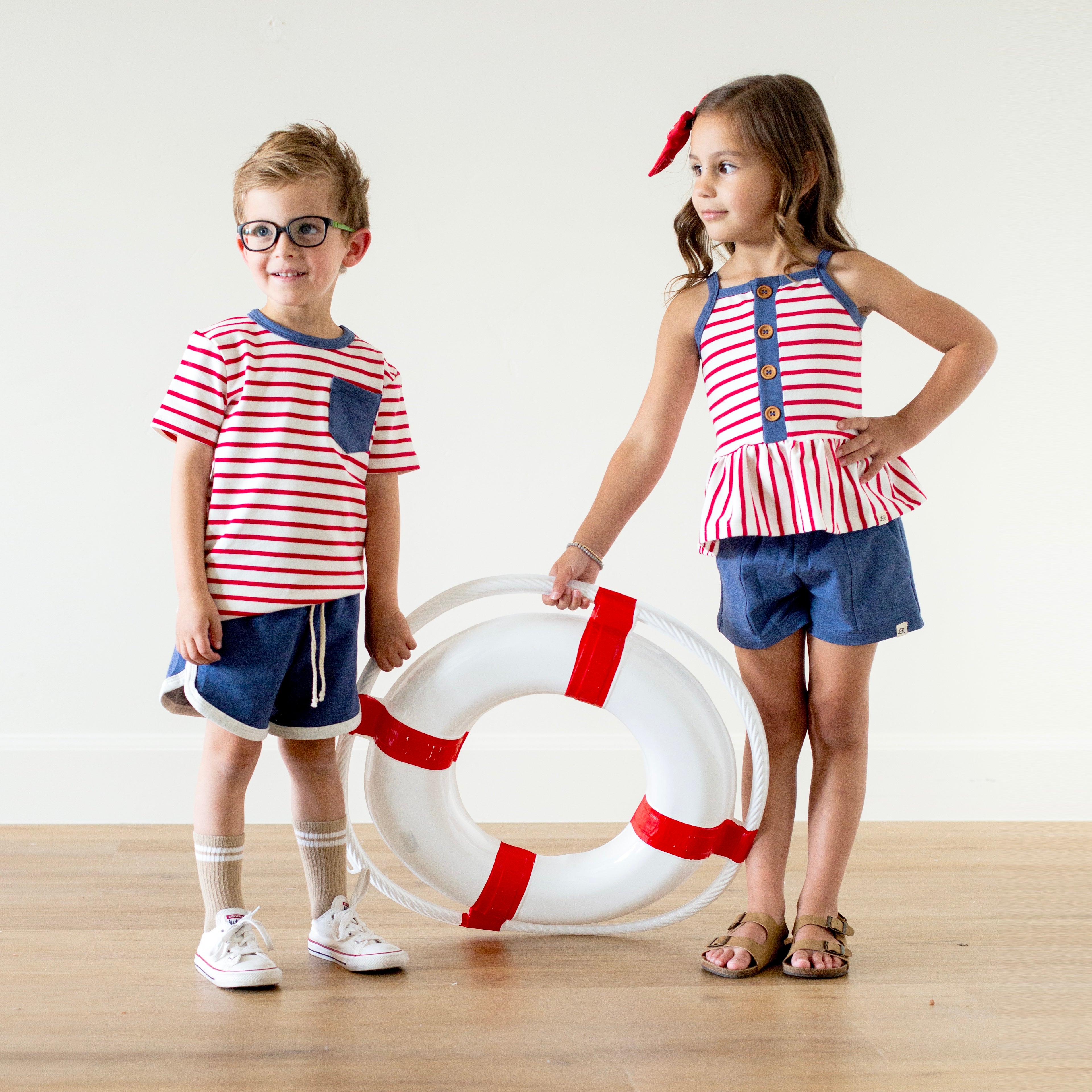 Summer is just around the corner with our Heritage collection! Materials include 95% cotton, 5% Spandex medium weight rib knit fabric. Material is not pre-shrunk so please allow up to 10% shrinkage if machine-dried. Made in China.