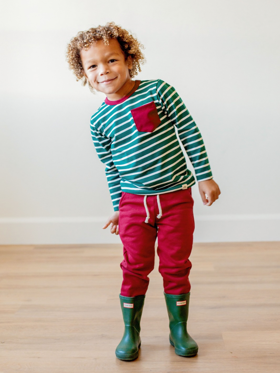 Comfy meets style in our Candy Cane Lane collection! Colors are coordinated to mix and match throughout the entire line! Materials include 85% cotton, 15% polyester medium weight performance terry fabric. Material is not pre-shrunk so please allow up to 10% shrinkage if machine-dried. Made in China.