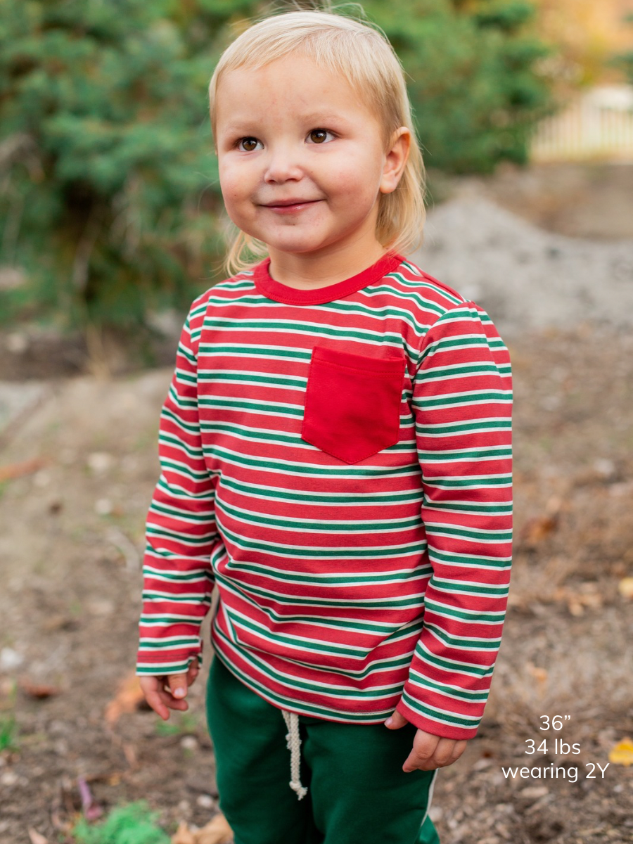 Comfy meets style in our Holiday collection! Colors are coordinated to mix and match throughout the entire line! Materials include 95% cotton, 5% Spandex medium weight rib knit fabric. Material is not pre-shrunk so please allow up to 10% shrinkage if machine-dried. Made in China.