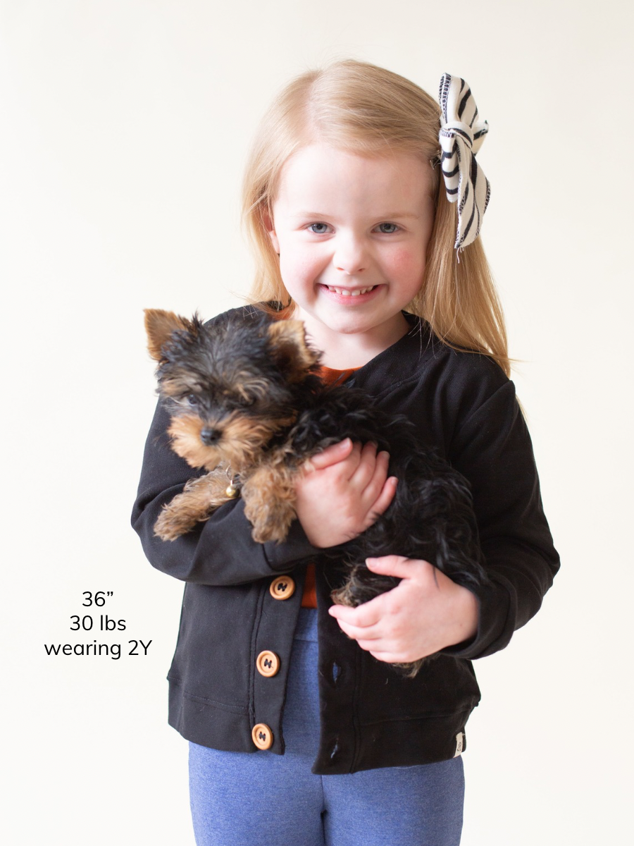 Comfy meets style in our Bewitched collection! Colors are coordinated to mix and match throughout the entire line! Materials include 95% cotton, 5% Spandex medium weight rib knit fabric Material is not pre-shrunk so please allow up to 10% shrinkage if machine-dried. Made in China.